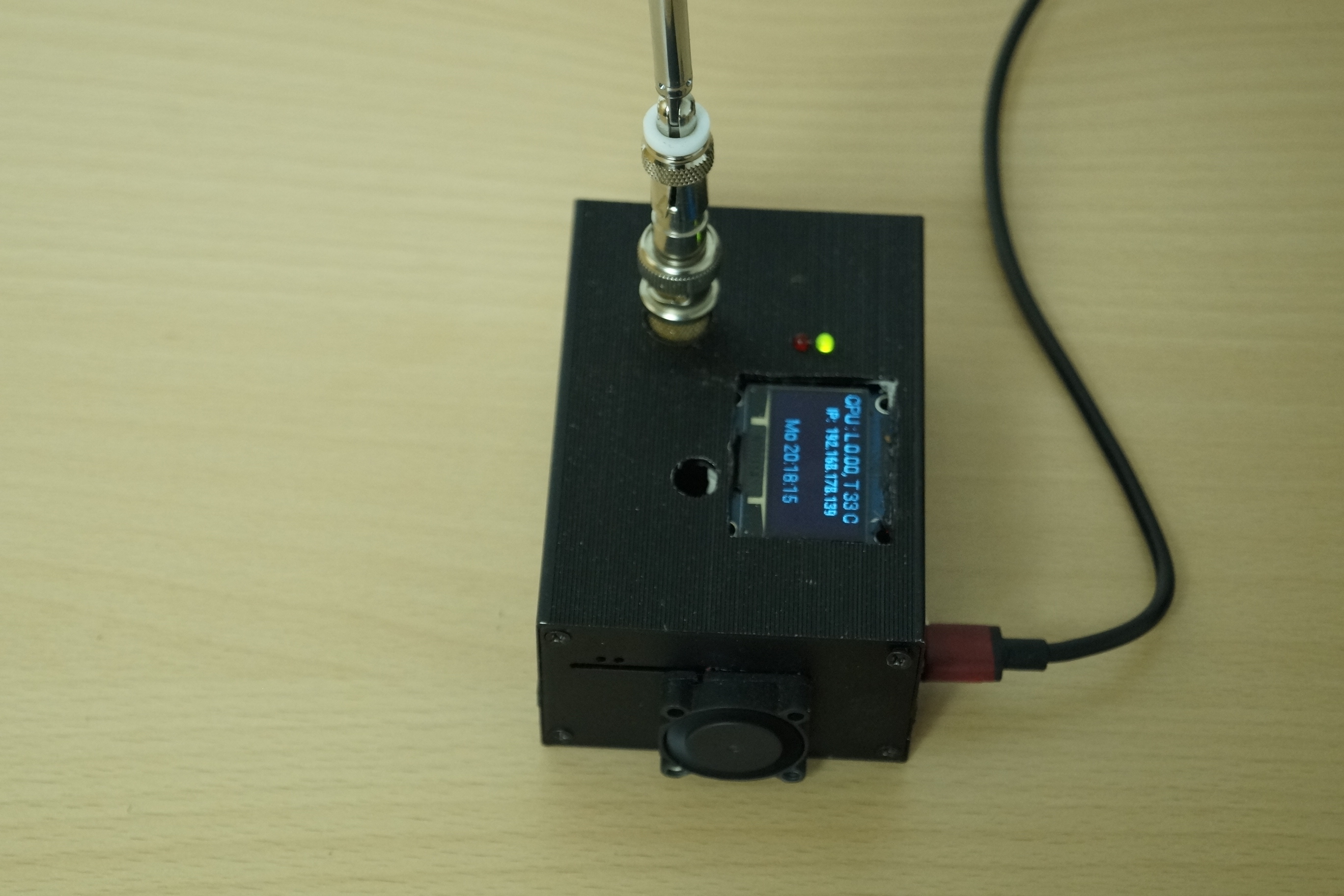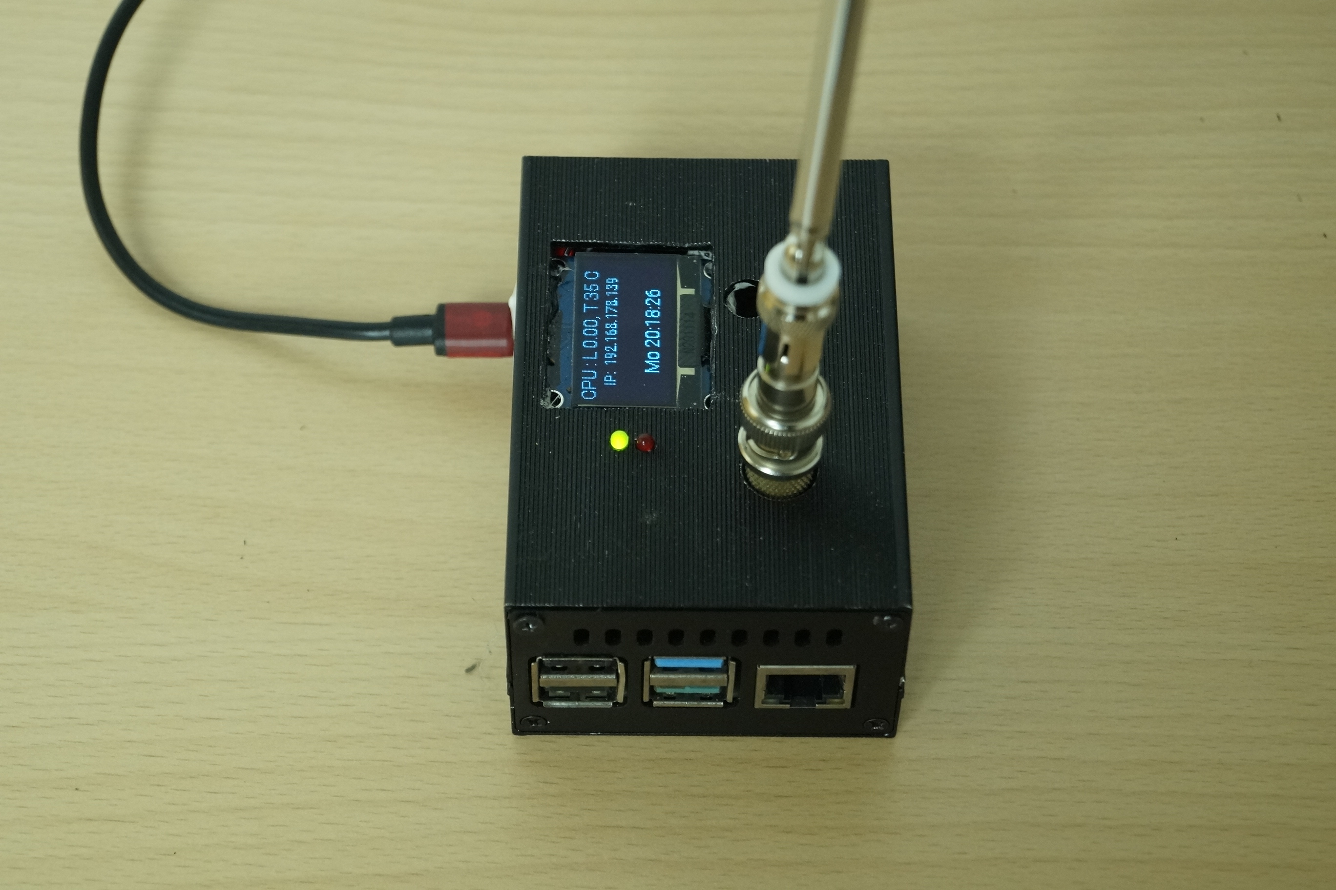 Alles zusammen in einem stabilen Alugehäuse mit Lüfter und einem Display für die wichtigsten Infos.